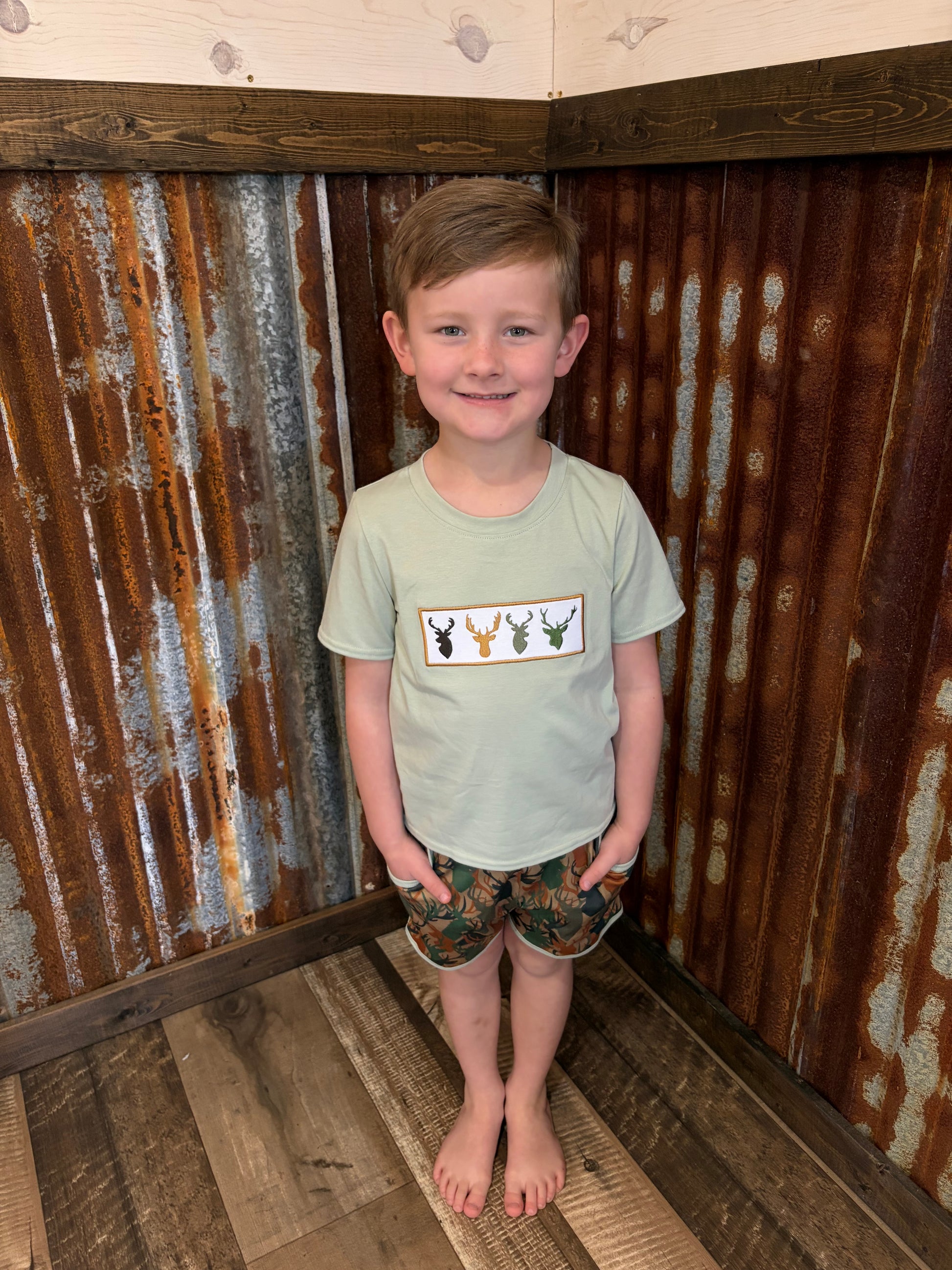 Get your little buck ready for adventure in the Antler Embroidered Set! This charming shorts ensemble boasts a one-of-a-kind camo pattern that'll have him blending in with the wild (or at least the backyard). Perfect for pint-sized explorers—or those just trying to avoid the dinner table! Buckle up for some fun!