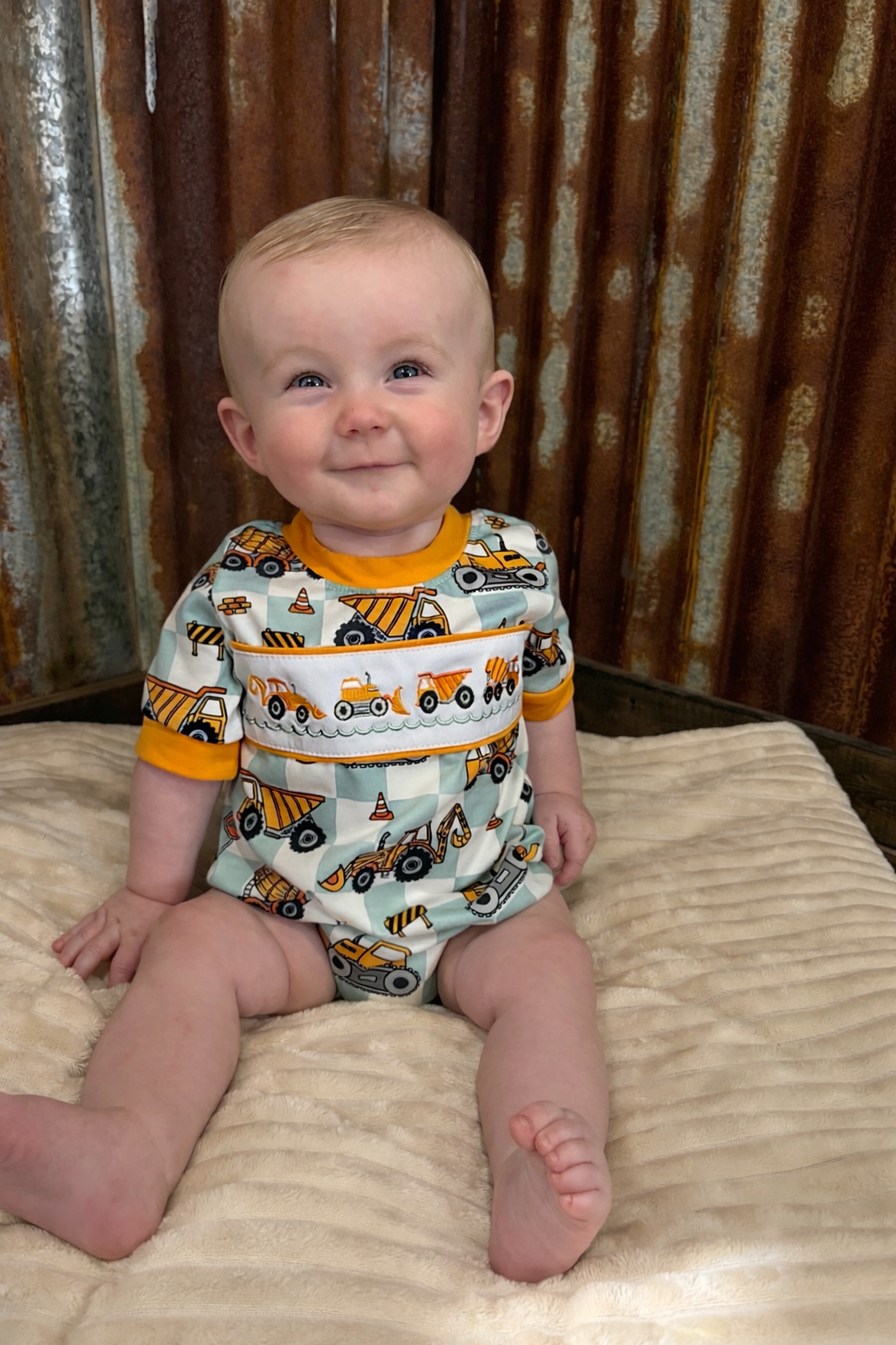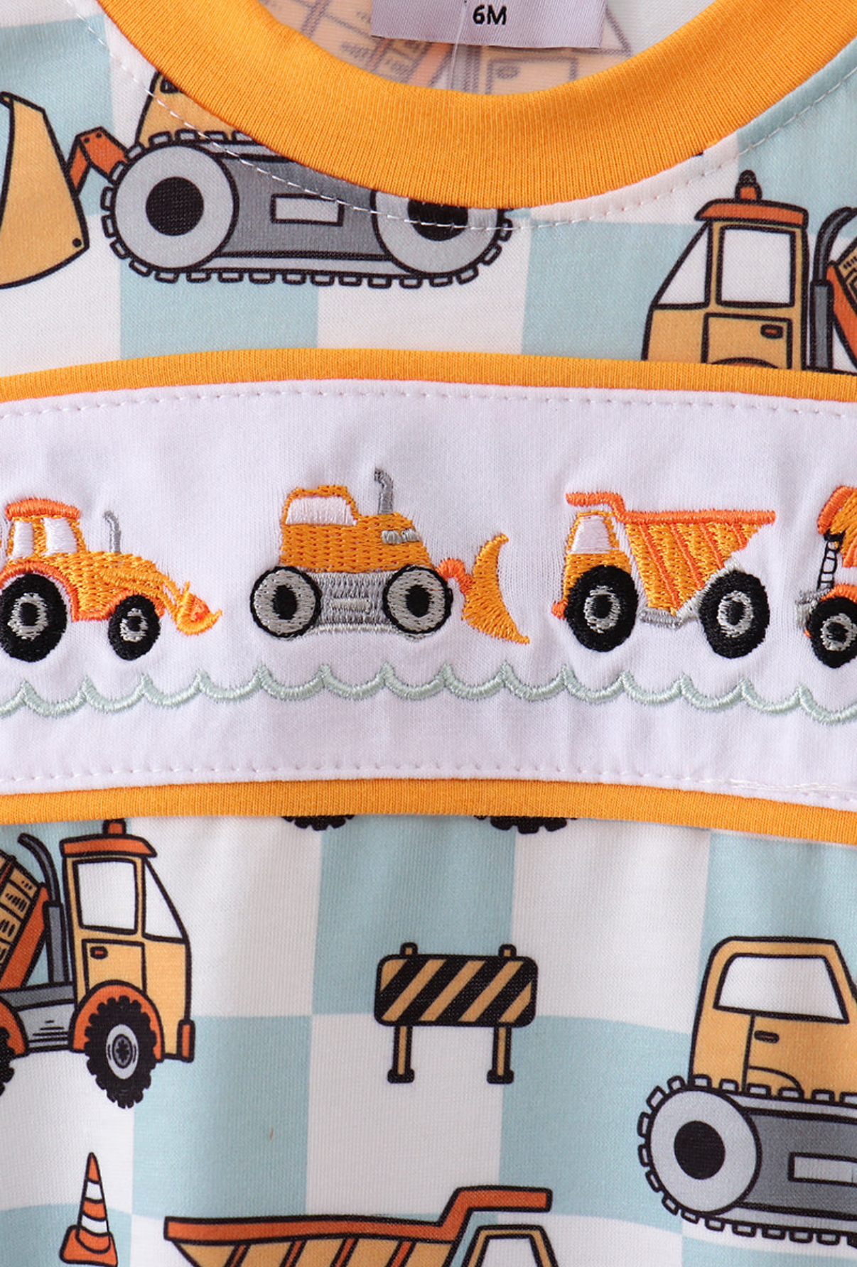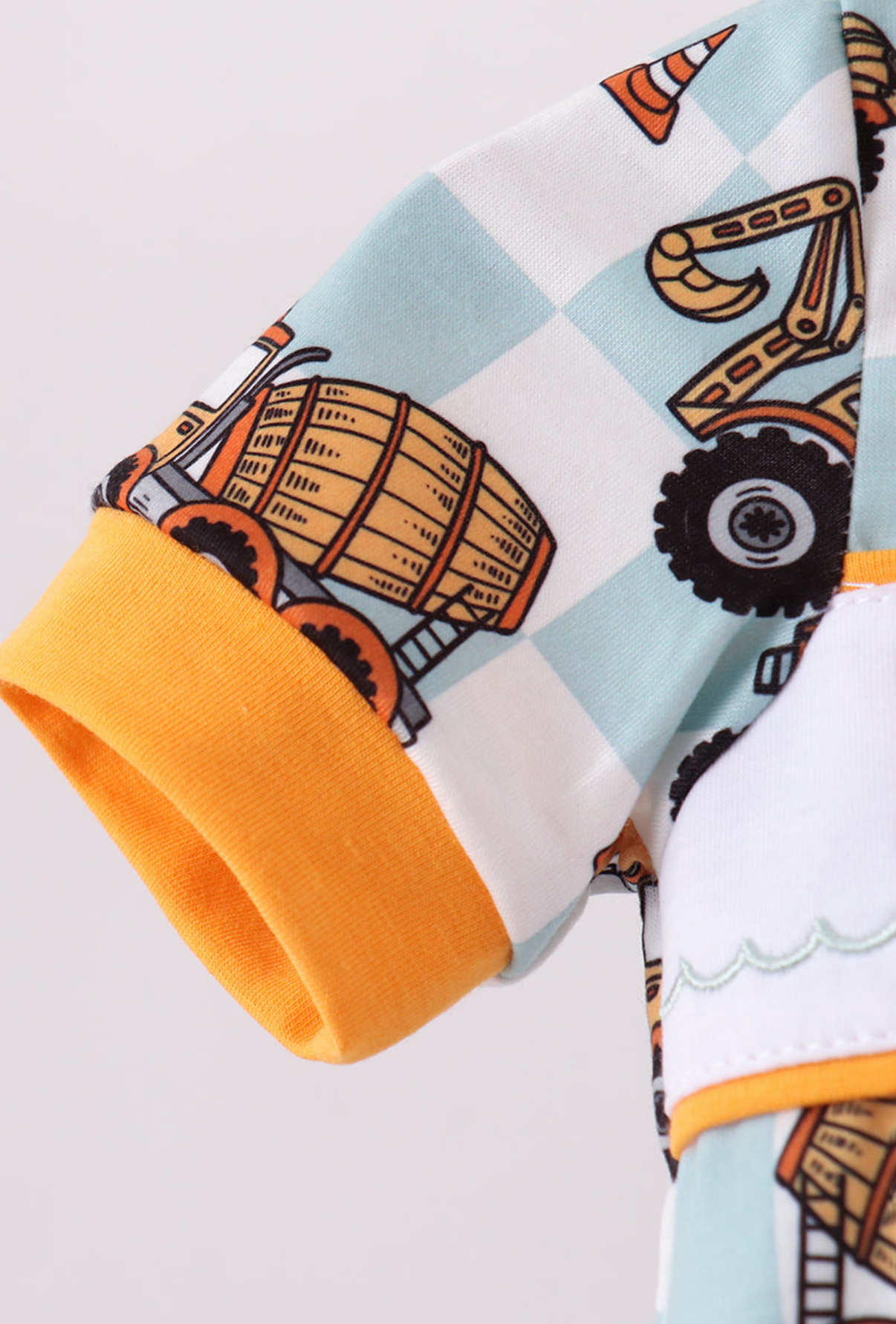 Watch out, world! Your little builder is about to roll onto the scene in this adorable Construction Crew Embroidered Bubble. With charming construction equipment embroidered on a delightful checkered background, it's the perfect outfit for tiny hands ready to tackle big adventures (or snack time)! Get ready for some serious "aww" moments!
