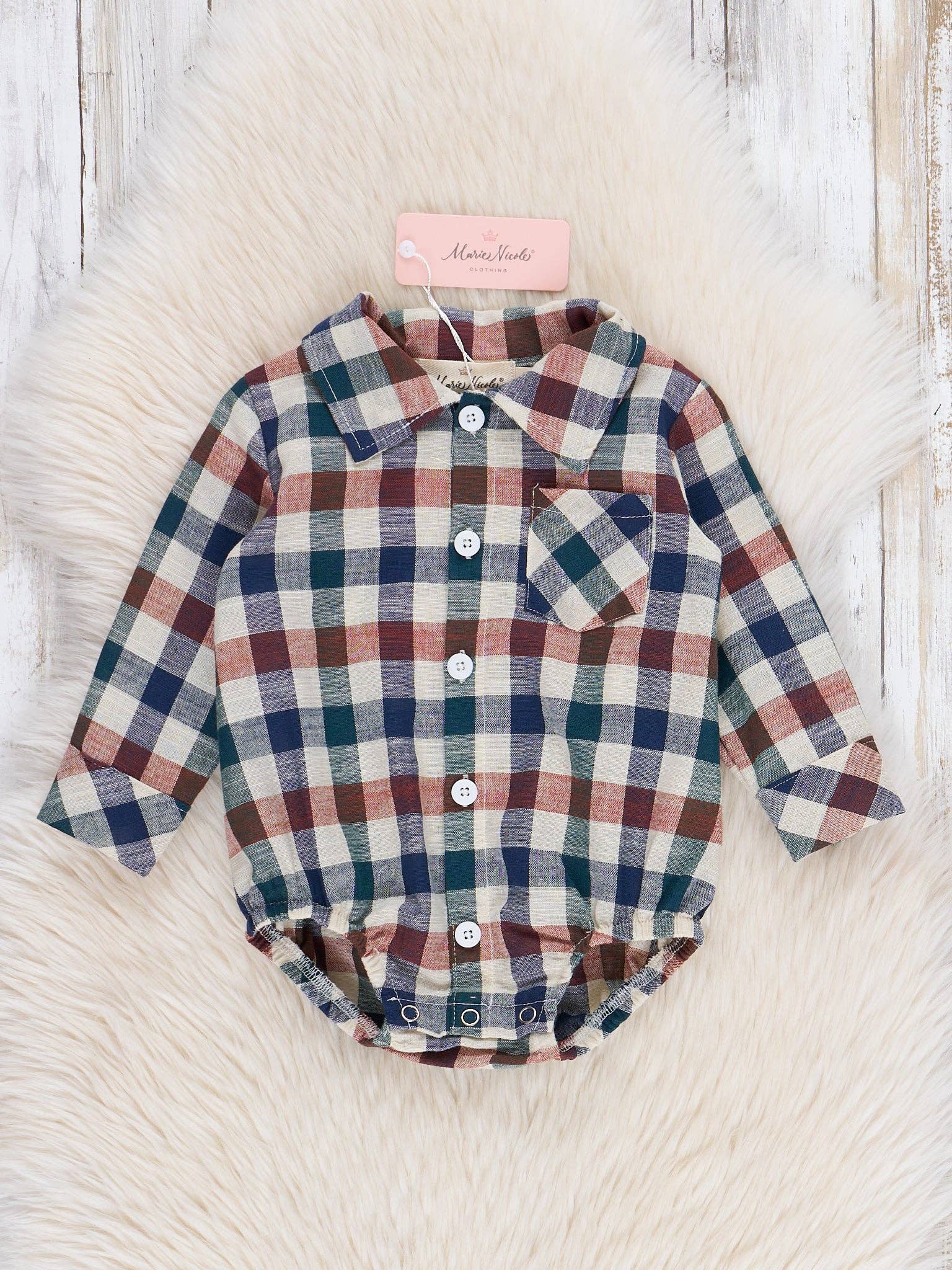 Fall Vintage Plaid Long Sleeve Baby Polo