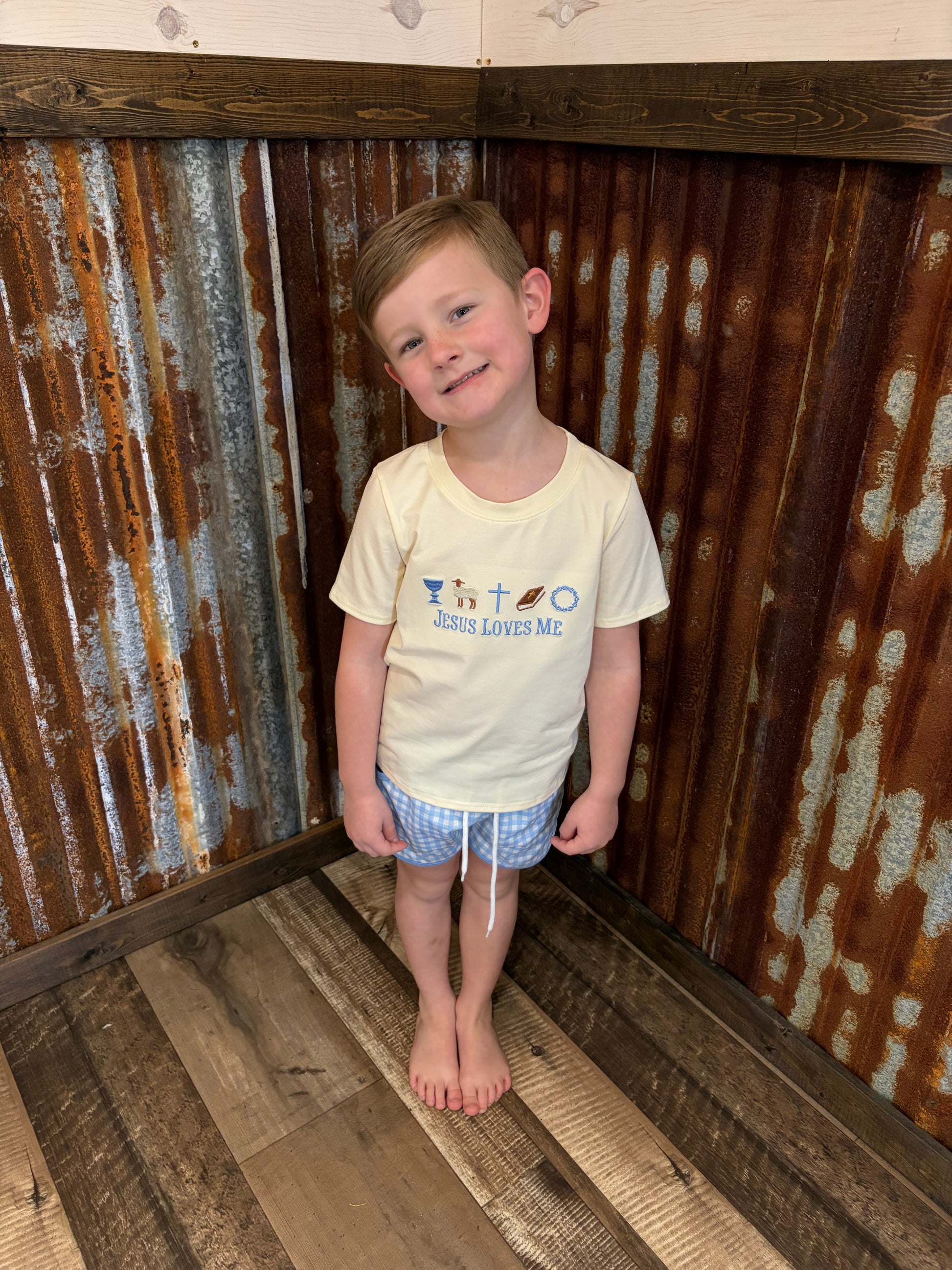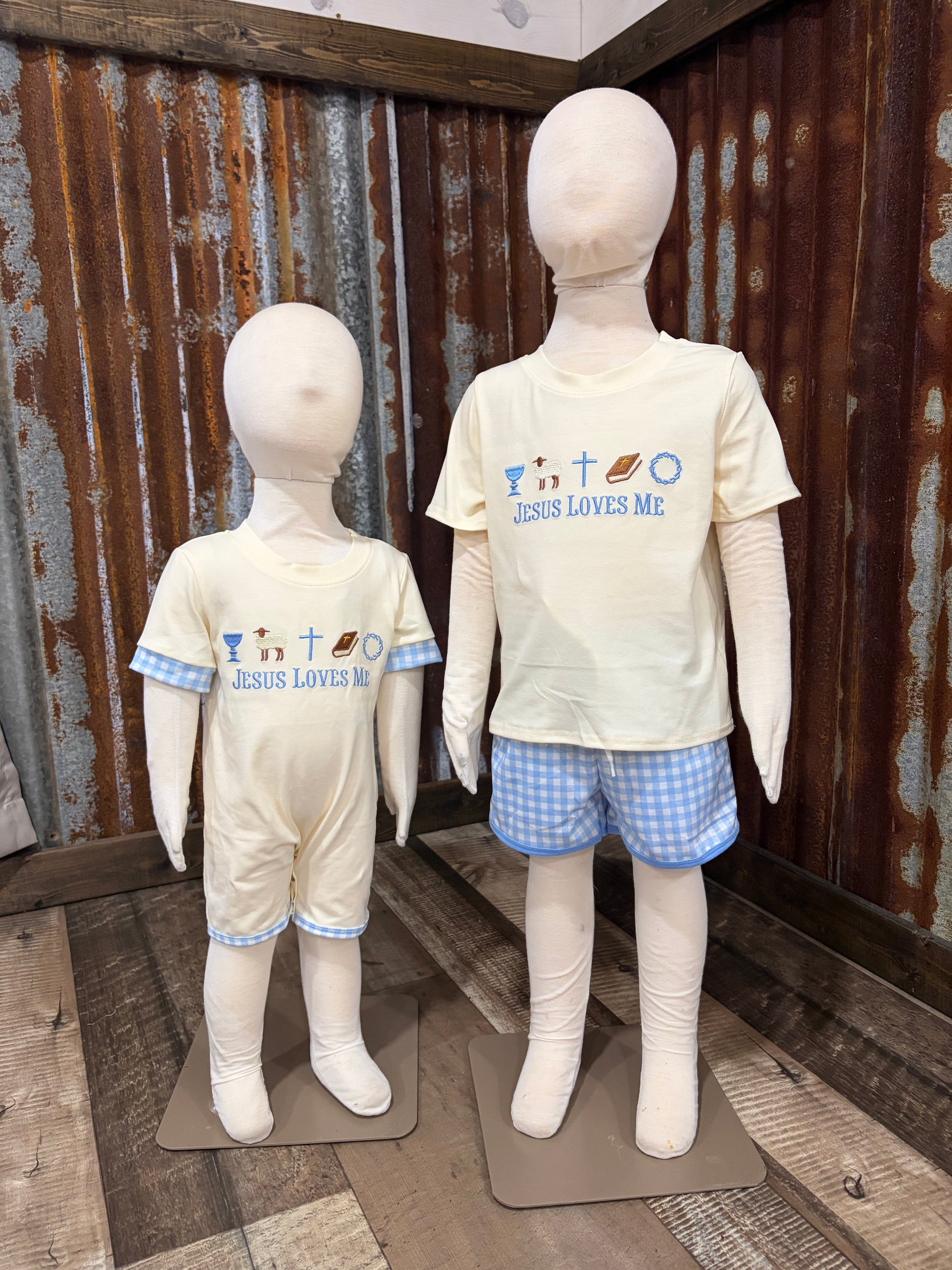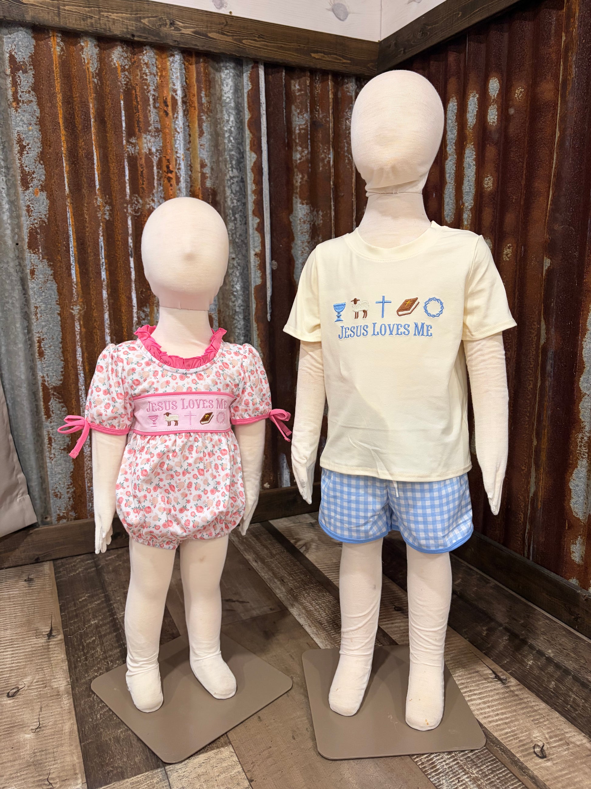Celebrate faith in style with this adorable embroidered set featuring the timeless message "Jesus Loves Me." Perfect for church days, special occasions, or everyday wear, this playful outfit combines comfort with meaningful inspiration. The cute embroidery adds a charming touch that kids will love wearing. Soft, quality fabric ensures all-day comfort while spreading a message of love and faith.