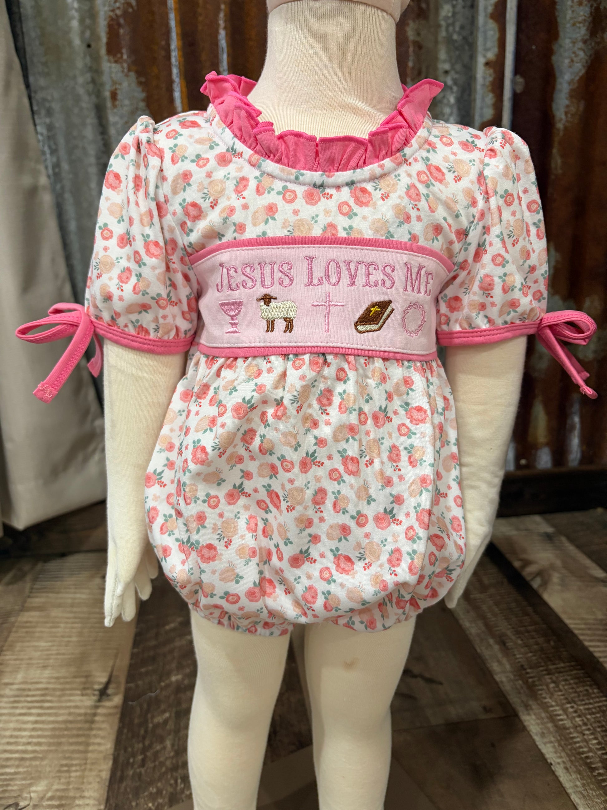Celebrate faith in style with this adorable embroidered bubble featuring the timeless message "Jesus Loves Me." Perfect for church days, special occasions, or everyday wear, this playful outfit combines comfort with meaningful inspiration. The cute embroidery adds a charming touch that kids will love wearing. Soft, quality fabric ensures all-day comfort while spreading a message of love and faith.