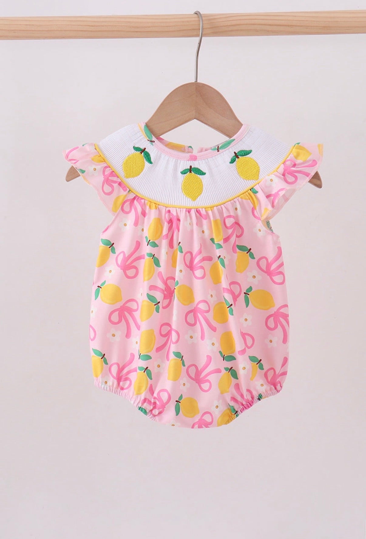 Get ready for a zest-fest! The Sweet Squeeze Bubble is a darling smocked outfit decked out with embroidered lemons and playful prints featuring bows. Perfect for tiny tots who want to look cute while squeezing the day! (Warning: may cause spontaneous smiles.)