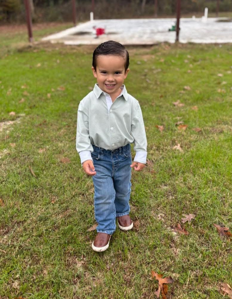 This super soft, sage-colored long sleeve polo is perfect for little boys who love to play and explore in comfort. Its gentle fabric keeps them cozy all day, while the timeless design adds a touch of classic style to any adventure. Easy to wear and great for layering, it’s a wardrobe win for every little guy.
